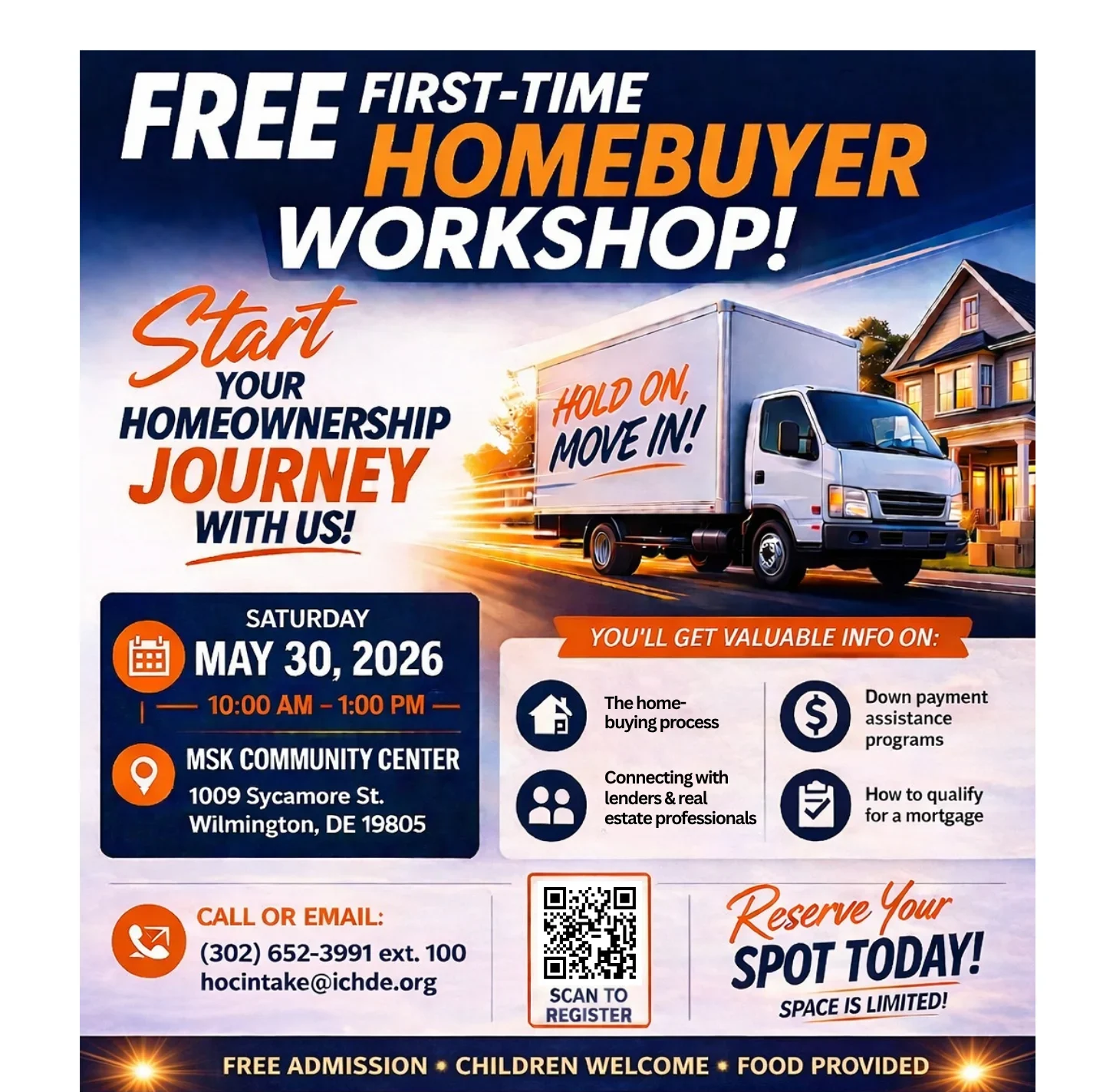 FREE First-Time Homebuyer Workshop sponsored by Prosperity Home Mortgage and presented by Councilwoman Yolanda McCoy in partnership with The City of Wilmington and The Cathedral of Fresh Fire. Join us to get valuable information on the home-buying process, down payment assistance programs, and qualifying for a mortgage, Make connections with real estate professionals who will be on-hand to answer any of your questions.